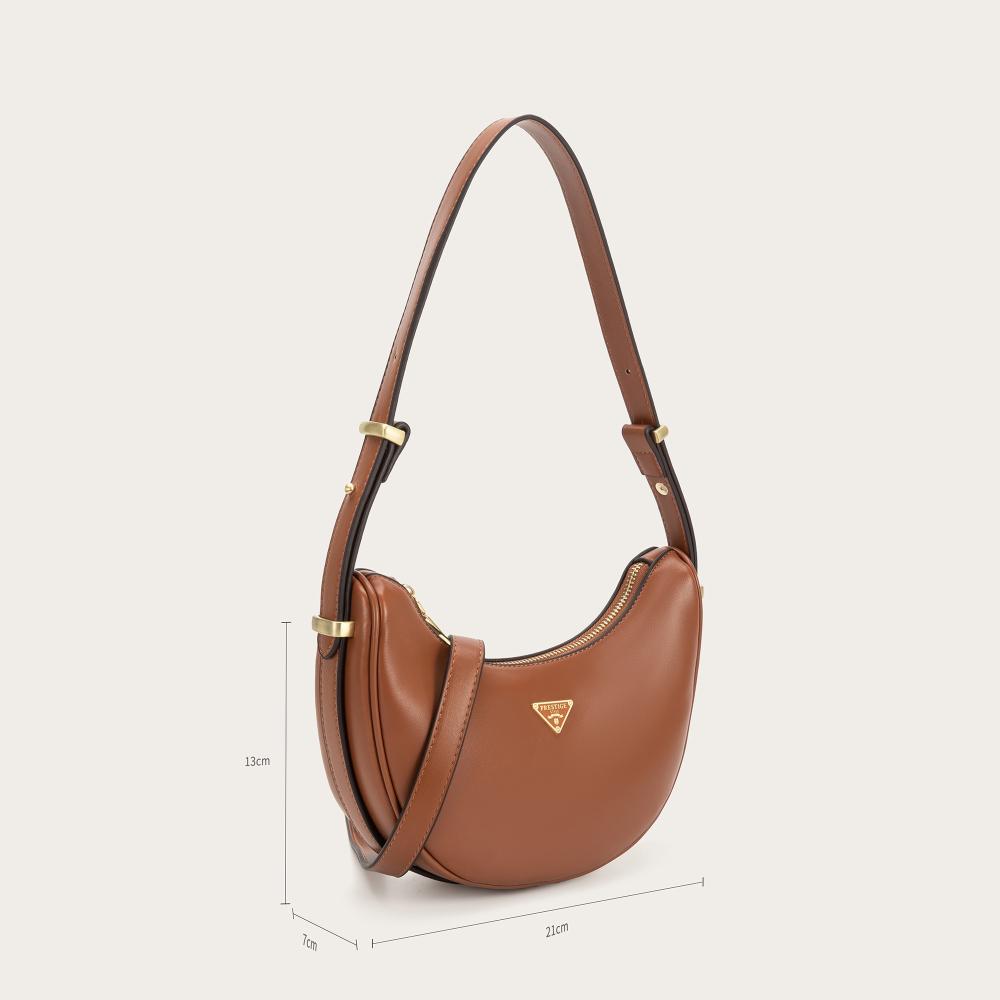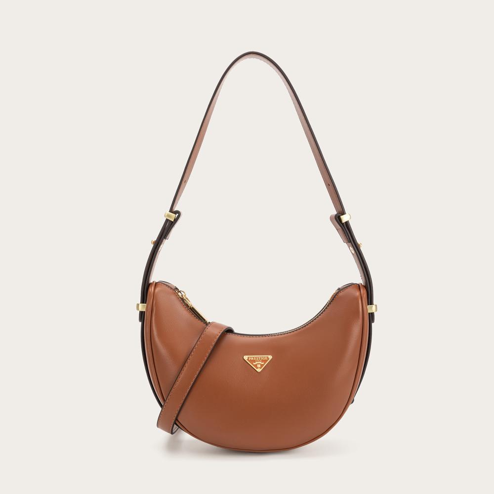 - شنطة نسائية من الجلد باللون البني الأنيق .