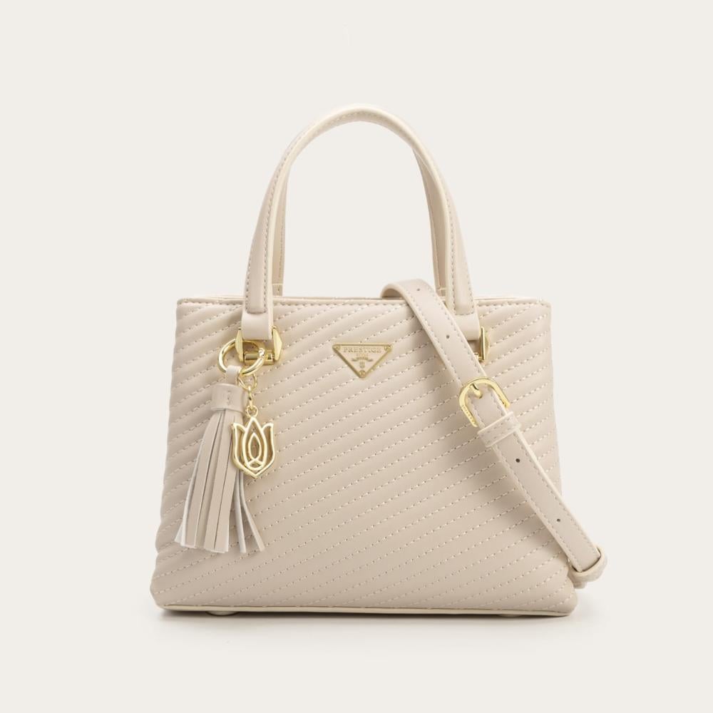 - شنطة نسائية من الجلد باللون البيج الأنيق .