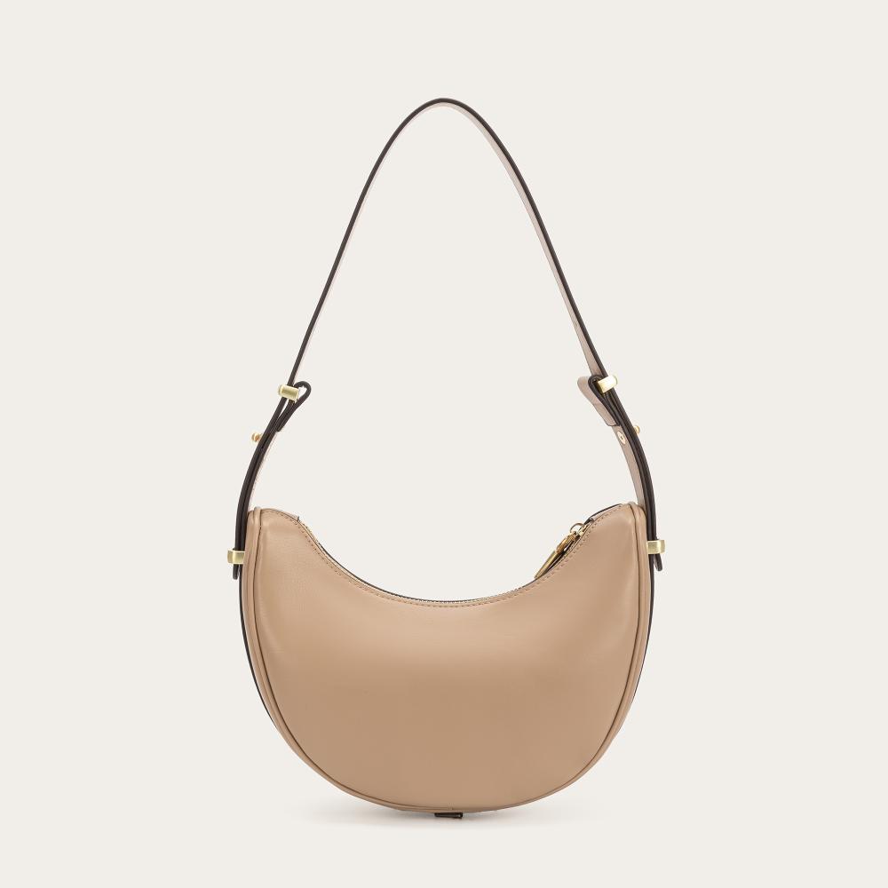 - شنطة نسائية من الجلد باللون الكاكي الأنيق .