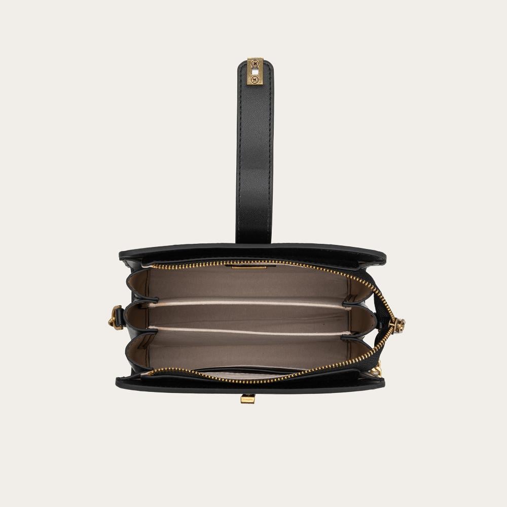 شنطة جلد سوداء أنيقة بمقاس صغير