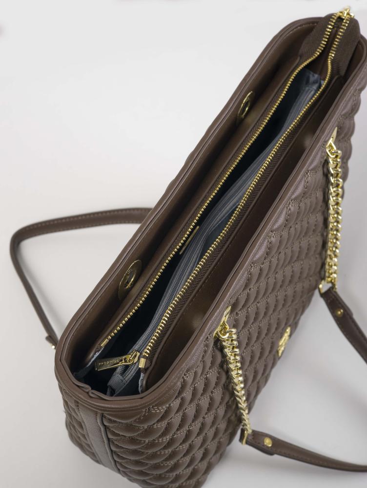 - شنطة نسائية من الجلد باللون الكوفي الأنيق .