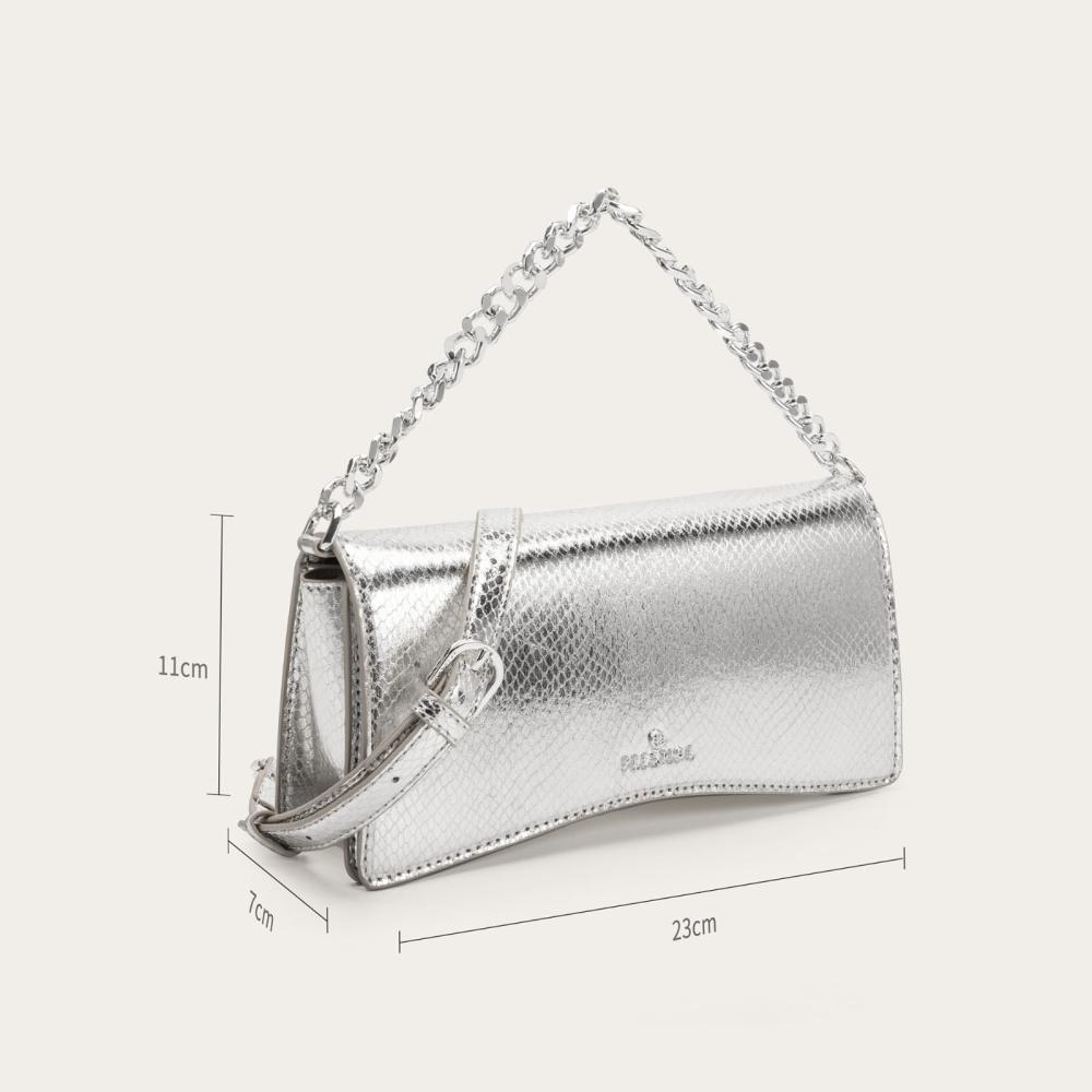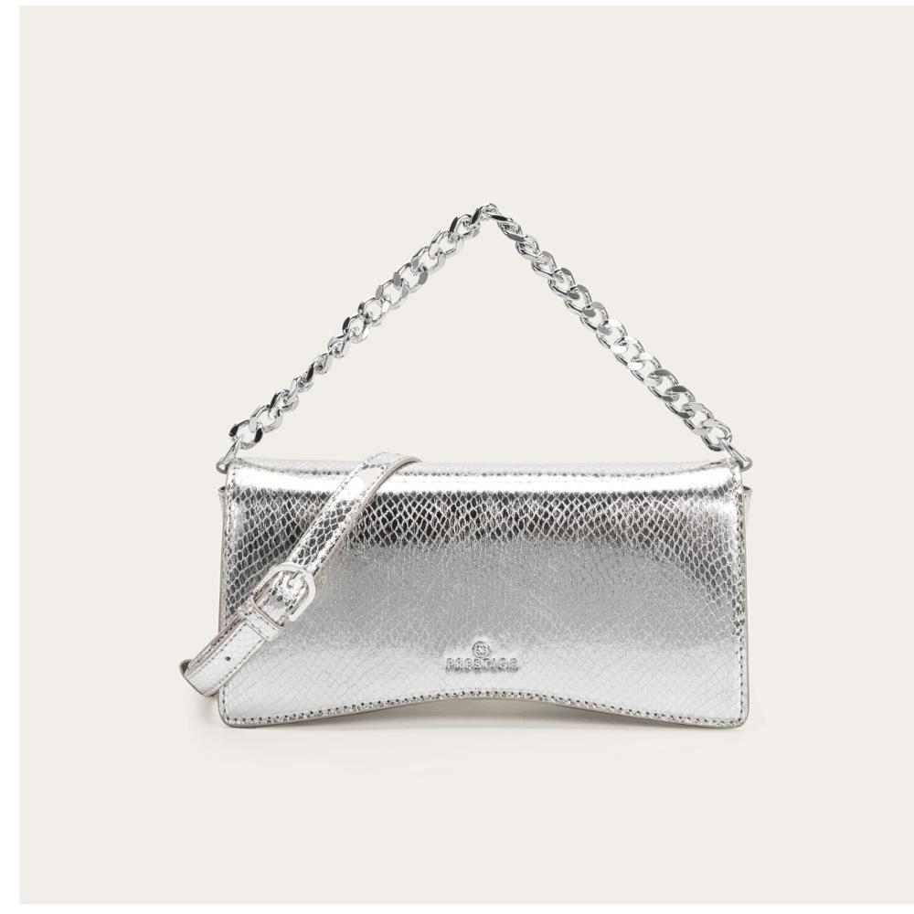 - شنطة نسائية سهرات من الجلد باللون الفضي والأنيق