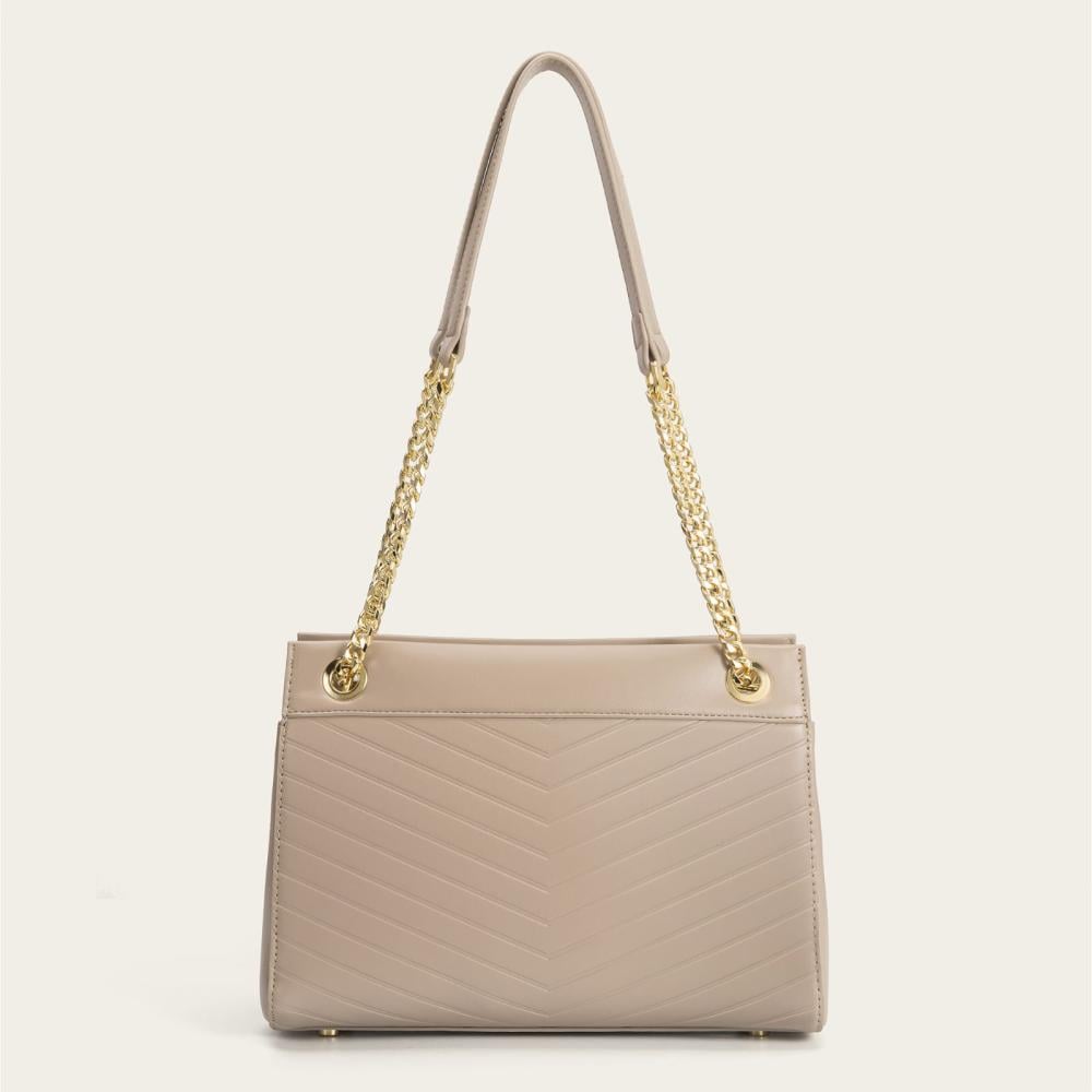 • شنطة نسائية من الجلد باللون البيج الفخم والأنيق