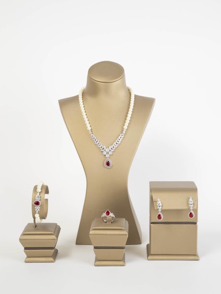 تألقي بإطلالة فريدة مع طقم الزركون الفاخر مع حبات اللؤلؤ بفص أحمر. هذا الطقم الأنيق يجمع بين جمال التصميم وبريق الأحجار ليضفي لمسة راقية على مظهرك في كل مناسبة.