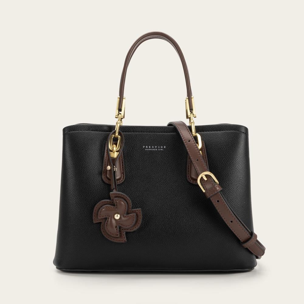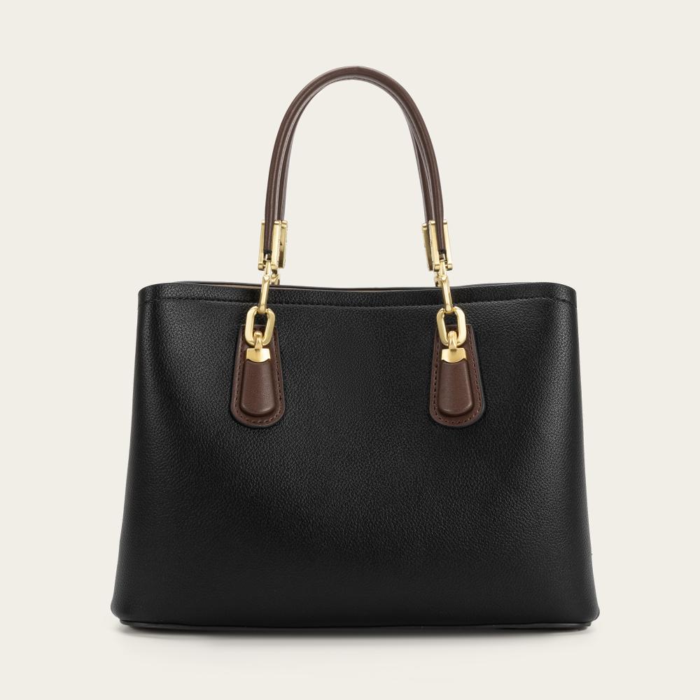 تميزي بإطلالة فاخرة مع شنطة يد نسائية أنيقة باللون الأسود الراقي مع تفاصيل ذهبية براقة ولمسات بني غامق تضيف عمقًا وأناقة للتصميم. مزيج الألوان يمنح الحقيبة طابعًا كلاسيكيًا فاخرًا يناسب جميع الإطلالات، سواء كانت رسمية أو كاجوال.