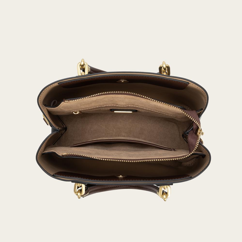حجمها العملي يجعلها مثالية كـ حقيبة عمل أو حقيبة يومية، حيث تتسع للمحفظة، الهاتف، المفاتيح، ومستحضرات التجميل بسهولة. كما أن التفاصيل الذهبية تضيف لها لمسة فخامة تجذب الأنظار في كل مناسبة.
