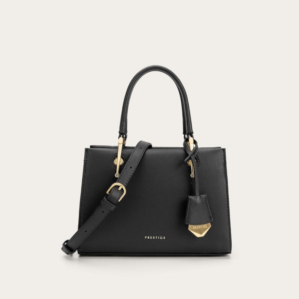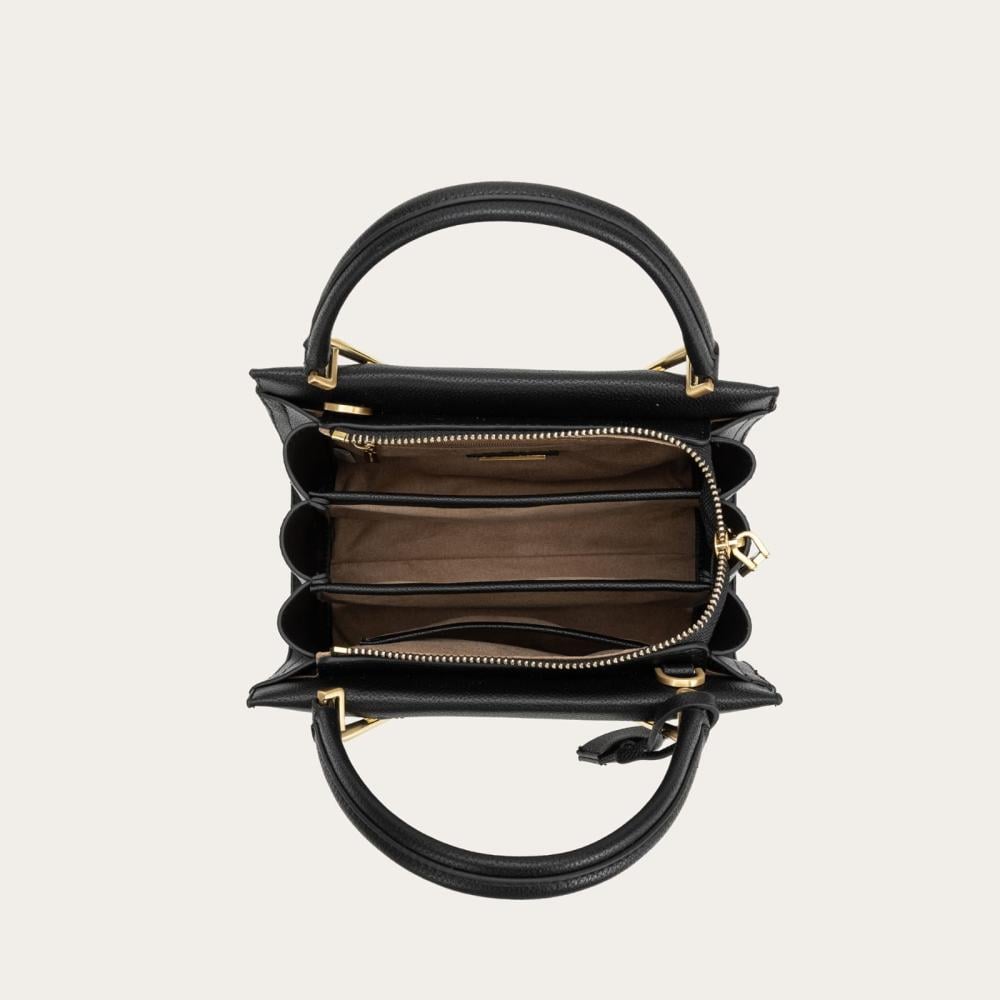 شنطة سوداء فاخرة بتصميم عملي وتفاصيل ذهبية تضيف لمسة رقي لكل إطلالة. مثالية للعمل والمناسبات اليومية بحزام كروس ويد